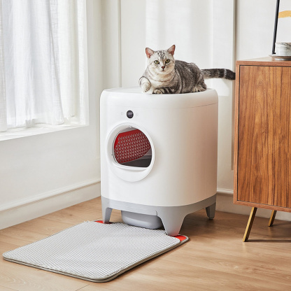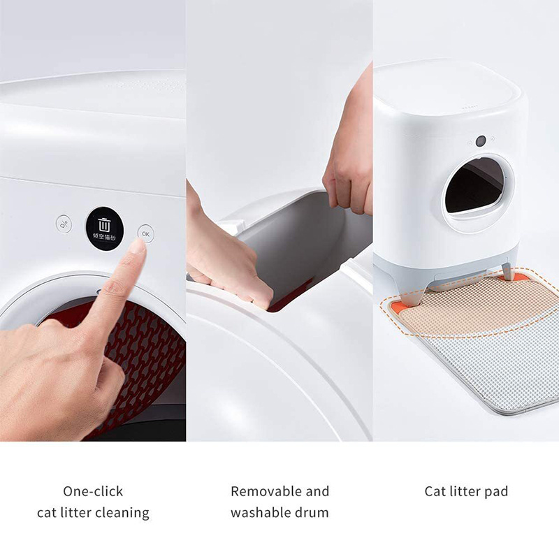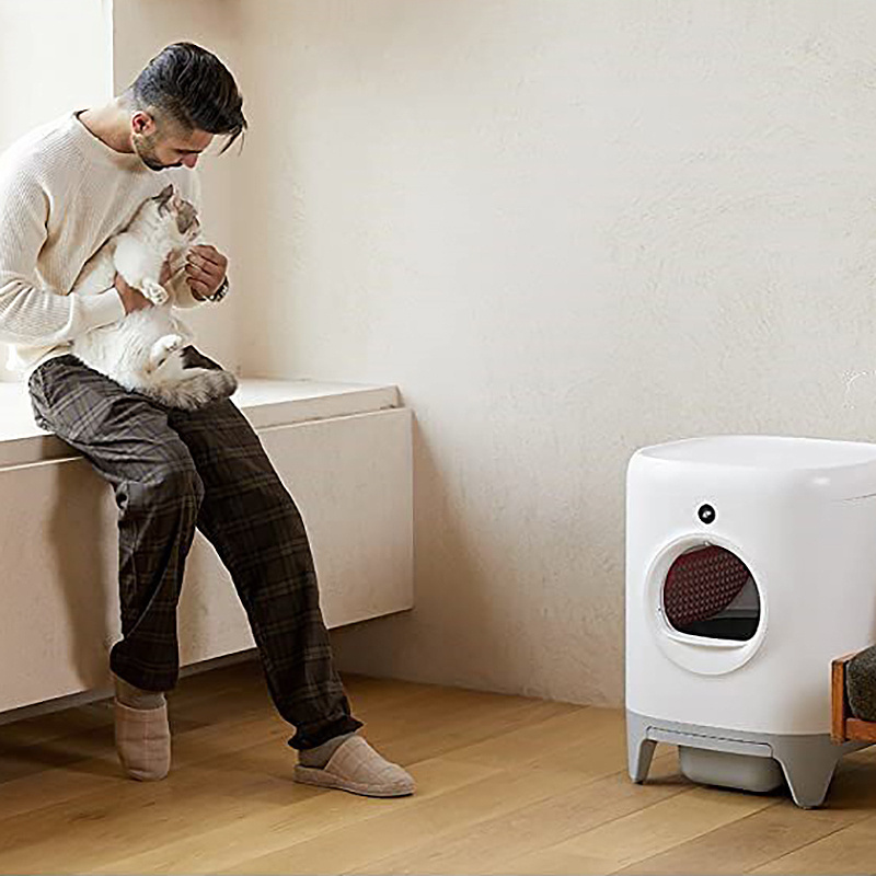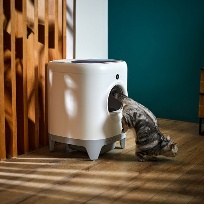 The litter box has a Triple Anti-Pinch Protection system, developed based on a cat's natural behaviors. It also has multiple maintenance protection barriers to avoid a potential safety hazard.