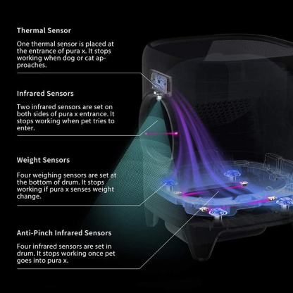 There are sensors inside the litter box that detects activities in the surrounding environment that ensures your pet can use it safely. It will also monitor when it is an appropriate time to initiate automatic cleaning cycles.