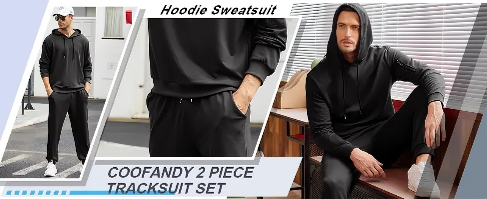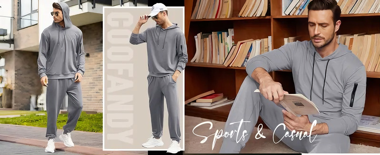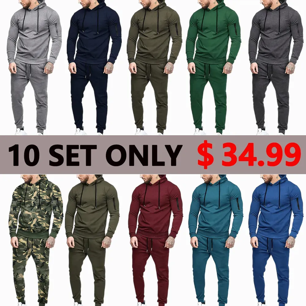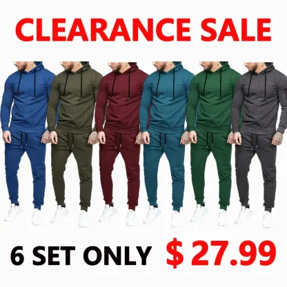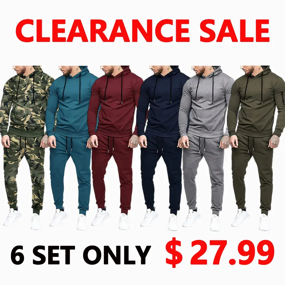 Clearance sale!Men’s Winter Fleece-Lined Set – Casual 2-Piece Hooded Running Sport Suit Sets-Pocket Jacket & Pants