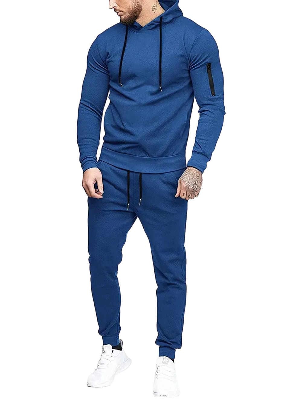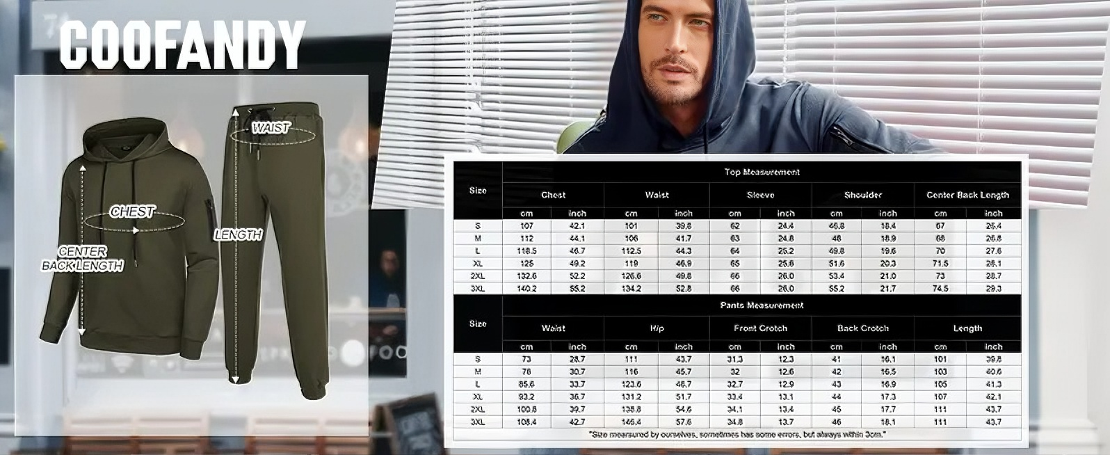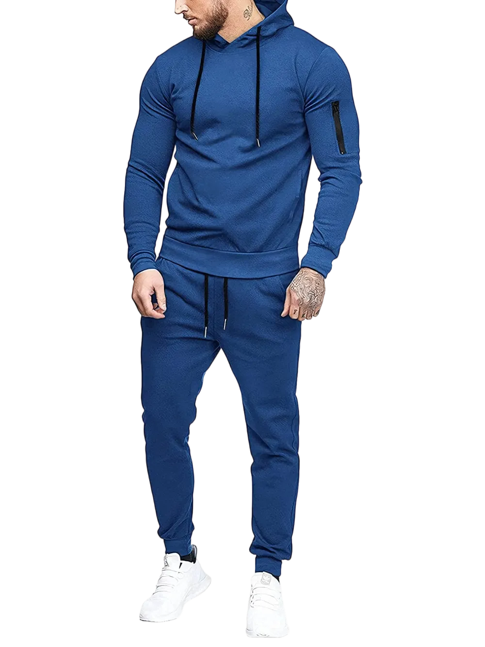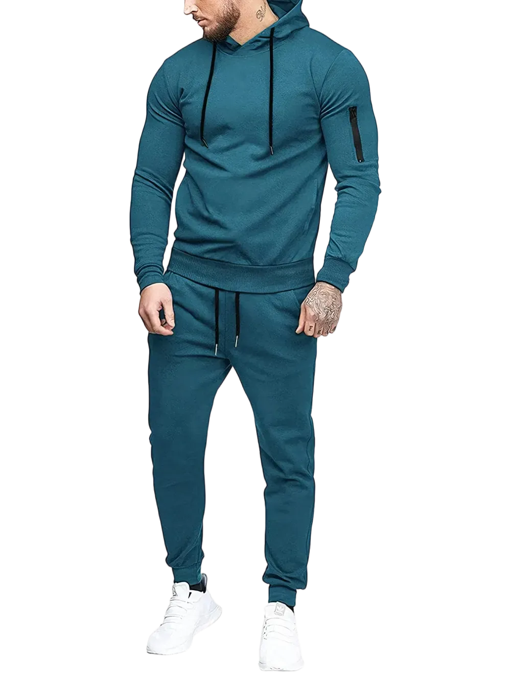 Clearance sale!Men’s Winter Fleece-Lined Set – Casual 2-Piece Hooded Running Sport Suit Sets-Pocket Jacket & Pants