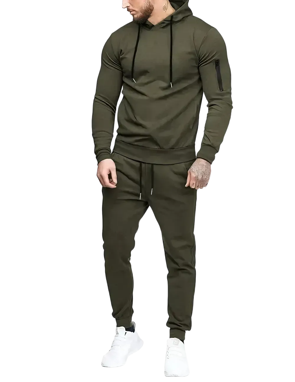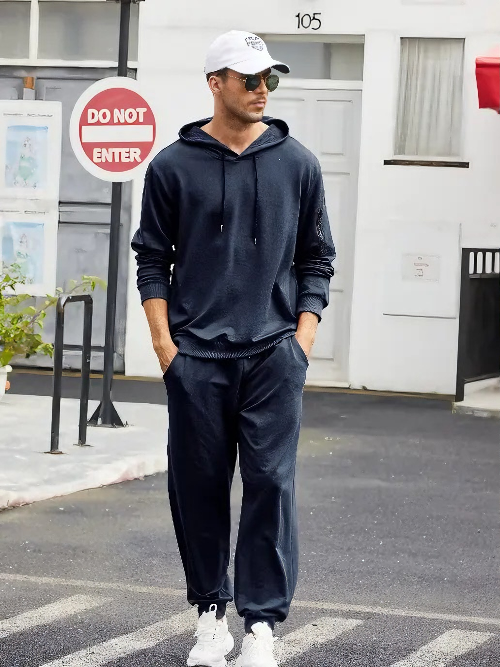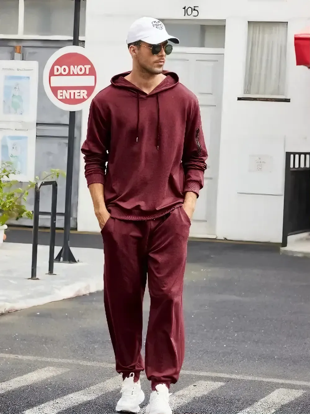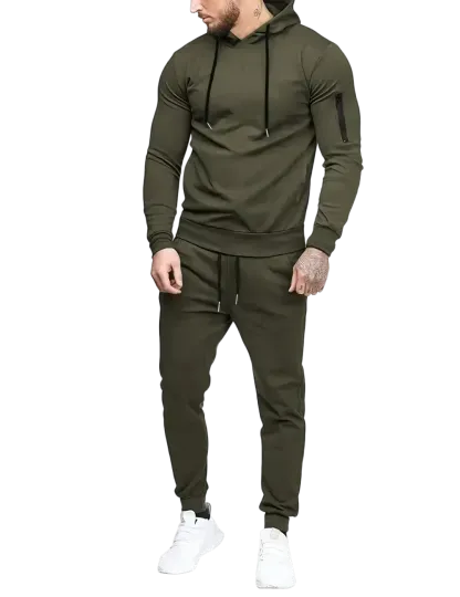 Clearance sale!Men’s Winter Fleece-Lined Set – Casual 2-Piece Hooded Running Sport Suit Sets-Pocket Jacket & Pants