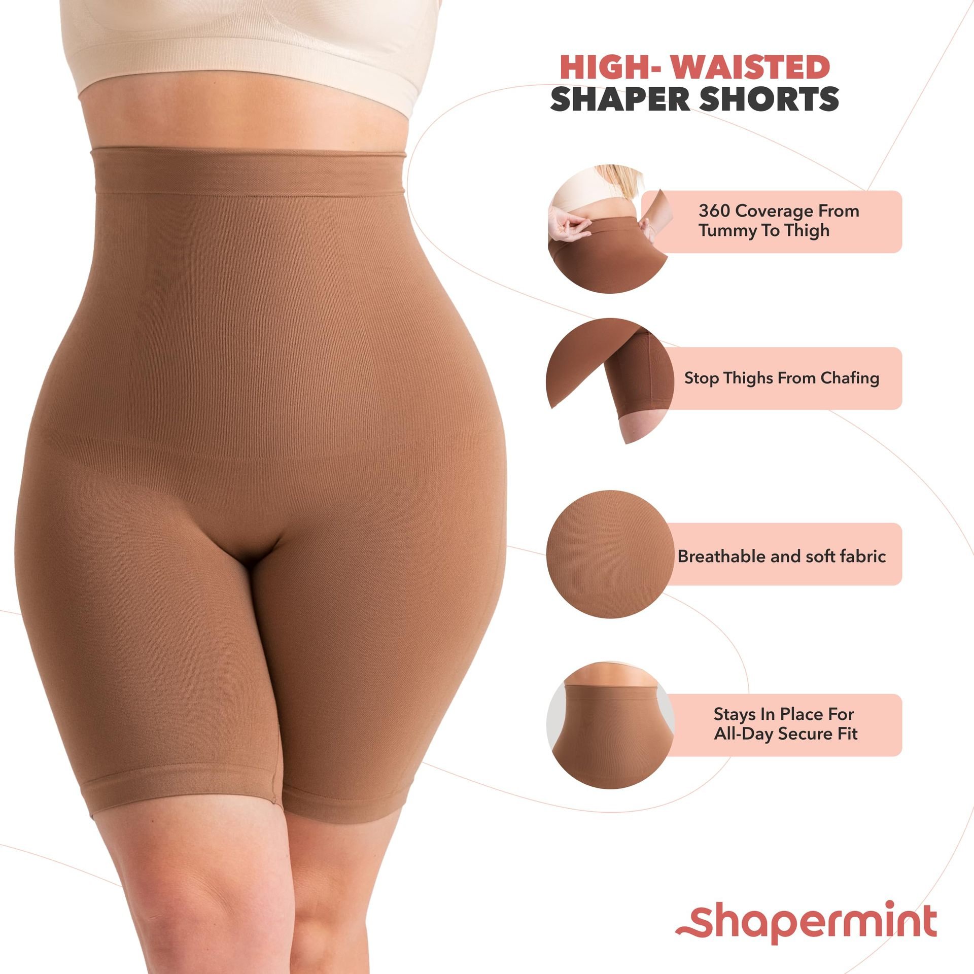 Get an instant smooth look from tummy to thigh with our best-seller, the All Day Every Day High-Waisted Shaper Shorts. Made from lightweight, non-see-through, and breathable materials (90% nylon and 10% spandex), these shorts ensure all-day comfort.