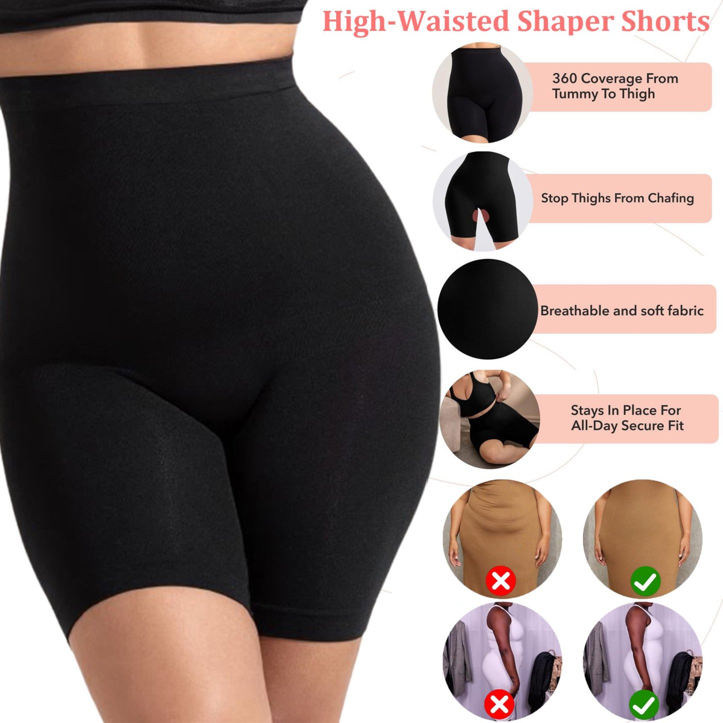 It comes with an anti-slip silicone strip at the waist, so they won’t roll down. No roll down, no chub rub, even if you sit, stretch or dance. Pair them with any outfit and feel confident and comfortable.