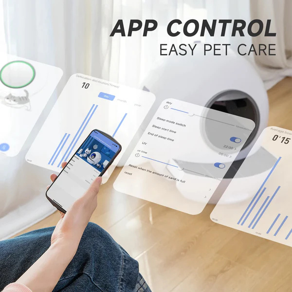 APP REMOTE CONTROL & CLEANING SYSTEM: Cat litter box self-cleaning can operate via APP(2.4Ghz Wi-Fi Only),Can set the number of minutes after the cat goes to the toilet to automatically clean up so that it will be clean and refreshed every time.It will record each cat's toilet habits.
