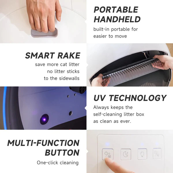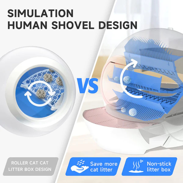 NO MORE STICKY POOPS: Our automatic cat litter box applied the newest self-clean design but not the typical rotating filter. So the poops will not stick to the machine to become smelly inside anymore.
